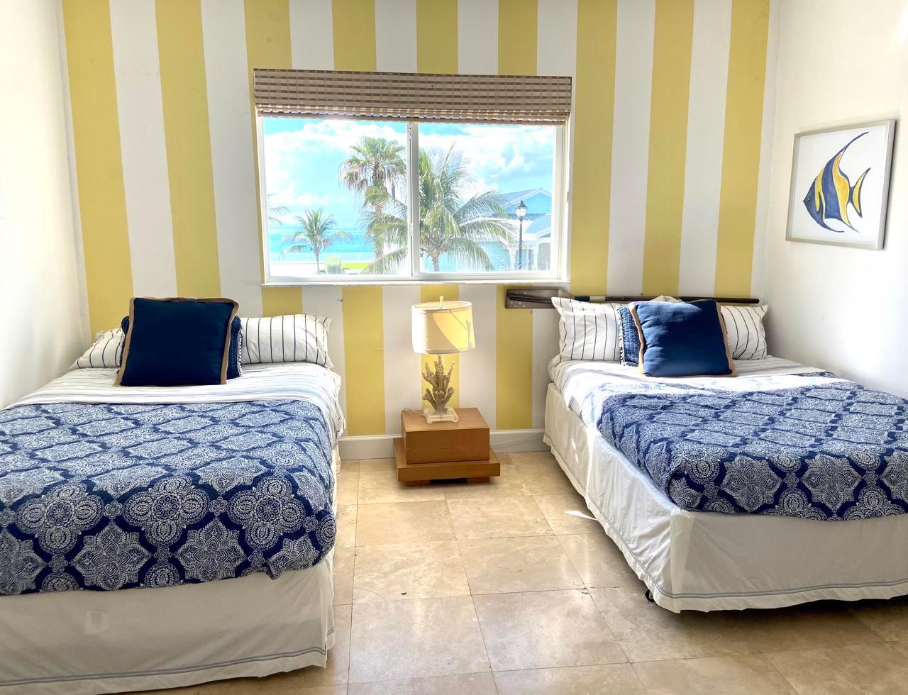 Treehouse 33200 “Paradise Villa” is a turnkey 3-bedroom, 3-bathroom single-family two-story villa that measures 2,838 sq. ft. and within walking distance to the crystal-clear turquoise Bahamian waters. This beautiful villa is in the private residential community of Bimini Bay. Just across the street from the villa is the oceanfront and beach club. “Paradise Villa” is beautifully decorated and features a great room with plush furniture, a dining area, and an optional front terrace through the bedroom. The open concept allows for the radiant natural Bimini light to flow throughout the entire home. The villa has a fully equipped kitchen with a porcelain-top stove and granite countertops. There are three separate bedrooms with king size beds and two twin beds. A guest bedroom is conveniently located on the first floor.